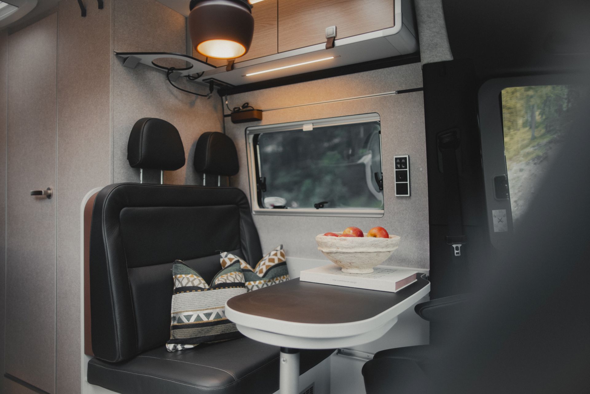 Drehbare Vordersitze verwandeln den Innenraum in einen Essbereich für 4 Personen.